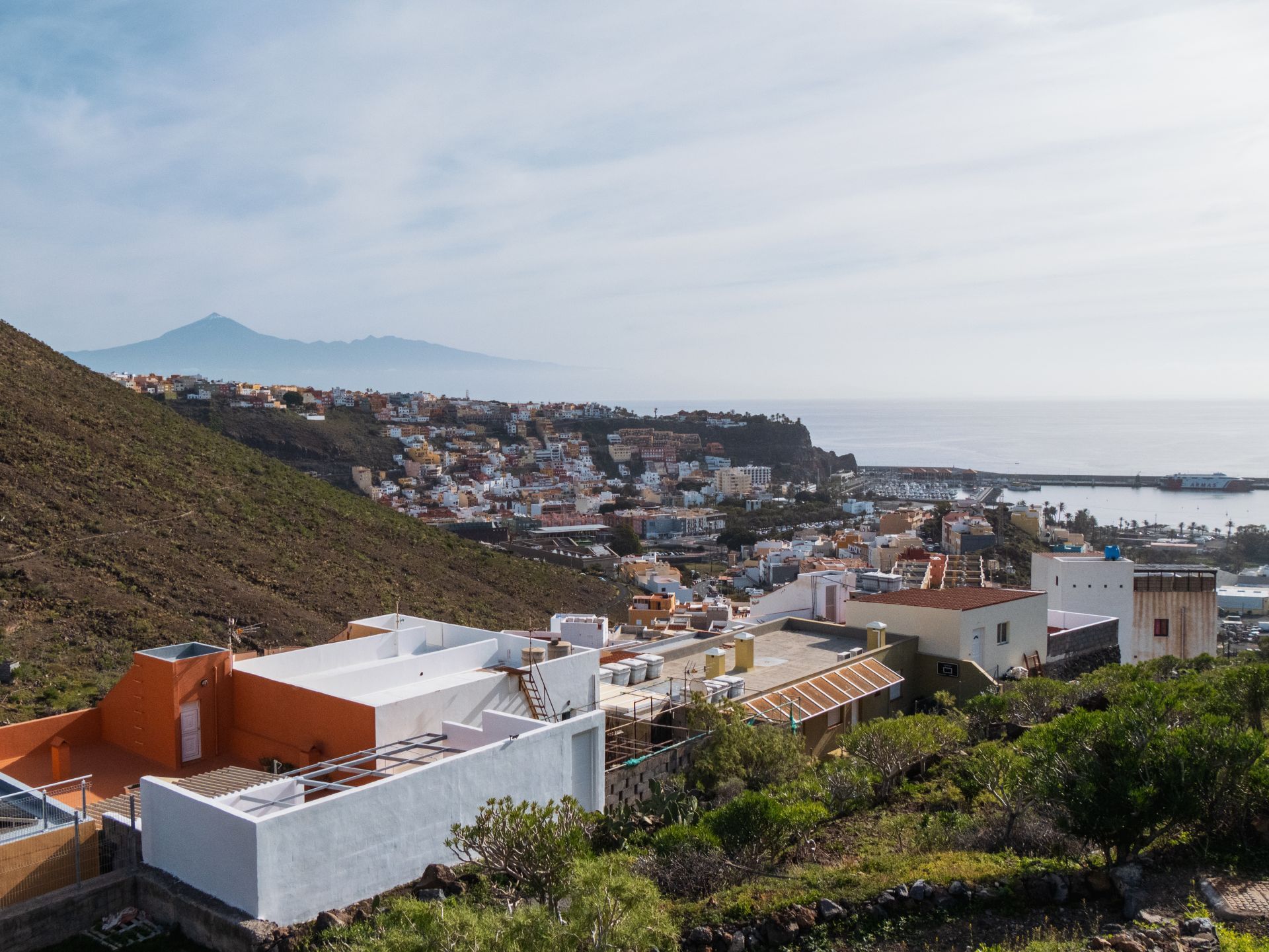 Die Gegend hier hat durch die Aufgabe der Landwirtschaft stark gelitten. Wo einst Getreide, Weizen, Gerste und Kichererbsen wuchsen und eine der wichtigsten Kornkammern La Gomeras war, sind die Terrassenfelder aufgrund des ausbleibenden Regens heute größtenteils von Wolfsmilchgewächsen (Cardones und Tabaibas) überwuchert. Was allerdings geblieben ist, sind die spektakulären und unverbauten Ausblicke hinunter auf mein Ziel: San Sebastián.