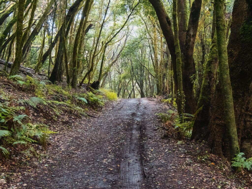 An der Staumauer bei Rosa de las Piedras konnte ich auf einem kurzen Roadwalk kurz durchatmen, bevor der Weg wieder unerbittlich anstieg. Der Regen wurde hier so stark, dass meine Kamera meistens in der Tasche bleiben musste. Aber ich verspreche euch: Die ersten Kilometer durch den Nationalpark Garajonay waren atemberaubend. Das raue Wetter trug nur noch mehr zu dieser ganz besonderen, mystischen Urwald-Stimmung bei.