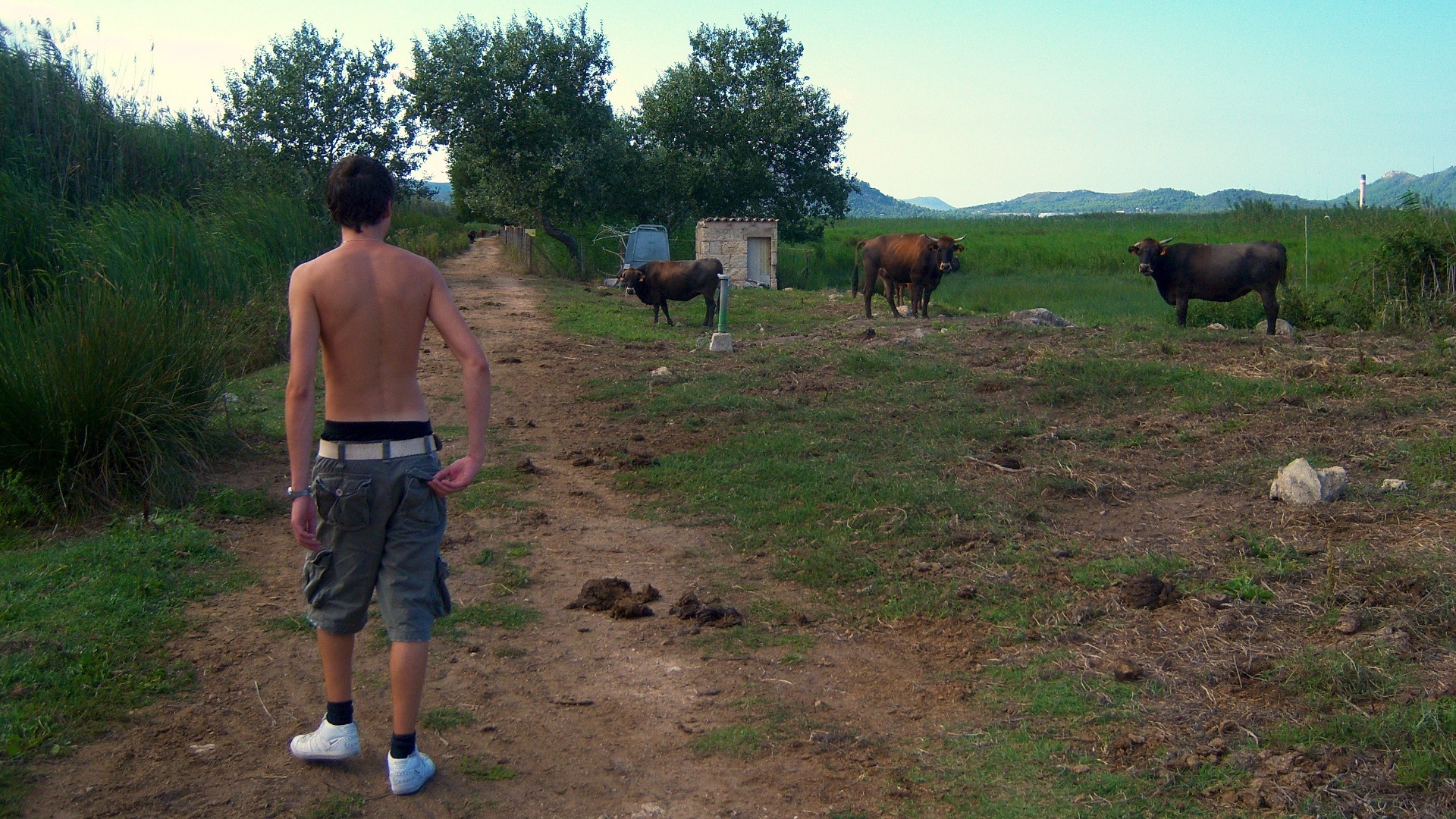 Geht man den besagten Weg weiter wird man früher oder später auch wieder ein Schild entdecken, das einem den Weg Zeigt. Nachdem man aber dieses Schild passiert hat, wird man schnell auf den interessantesten Teil dieses Tracks stoßen. Nachdem man sich für einige hundert Meter darüber wundert warum so viel Mist auf dem Weg liegt, erreicht man eine Art Weide. Obwohl es erst so aussieht, als ob eine Herde Stiere mit spitzen Hörnern auf einen wartet, stehen diese eigentlich nur rum. Allerdings muss man den einzigen Pfad für die nächsten paar hundert Meter mit diesen neuen Freunden teilen.
