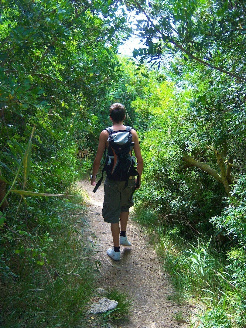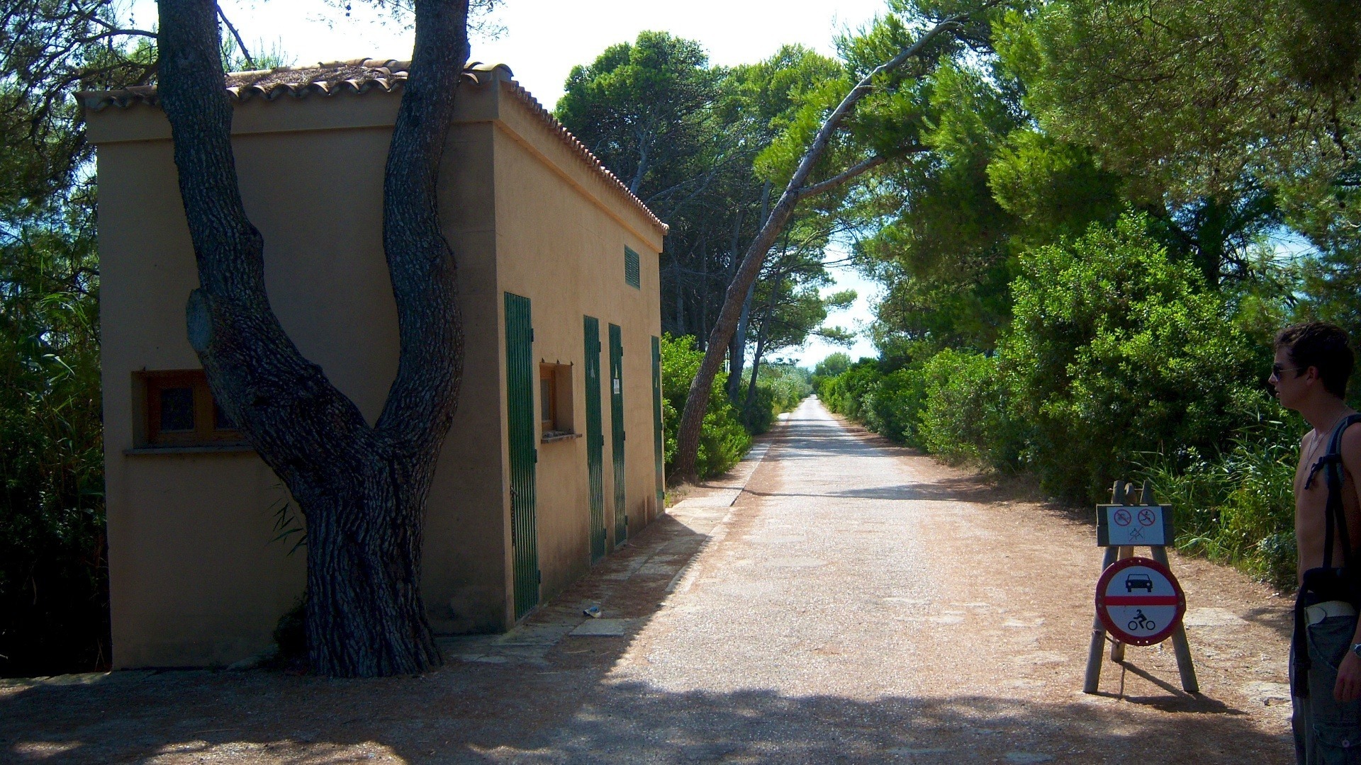 Entlang des Pfades kann man alte mediterrane Gebäude entdecken, die teilweise schon eingestürzt sind oder manchmal sogar renoviert wurden. Über Abbiegungen oder ähnliches braucht man sich hier keine Gedanken machen, da der Weg einfach gerade aus läuft und an dem Ende meist nur eine Gelegenheit ist um abzubiegen. Allerdings wird man früher oder später in einem Dorf raus kommen, dass einfach nicht in das Bild des Parks passt. Darüber hinaus befindet sich an dieser besagten Stelle KEIN Schild. Man muss also die erste Abbiegung nehmen, die nach rechts führt, auch wenn hier KEIN Schild ist. Wenn man die Hauptstraße in dem besagten Dorf erreicht, ist man schon zu weit gegangen. Den richtige Weg erkennt man daran, dass man an kleinere Gärten und bellenden Hunden vorbei streift. Viele alte eingestürzte Häuser stehen hier, die man auf eigene Gefahr auch betreten kann, was allerdings abzuraten ist, wenn man die Gebäude betrachtet.